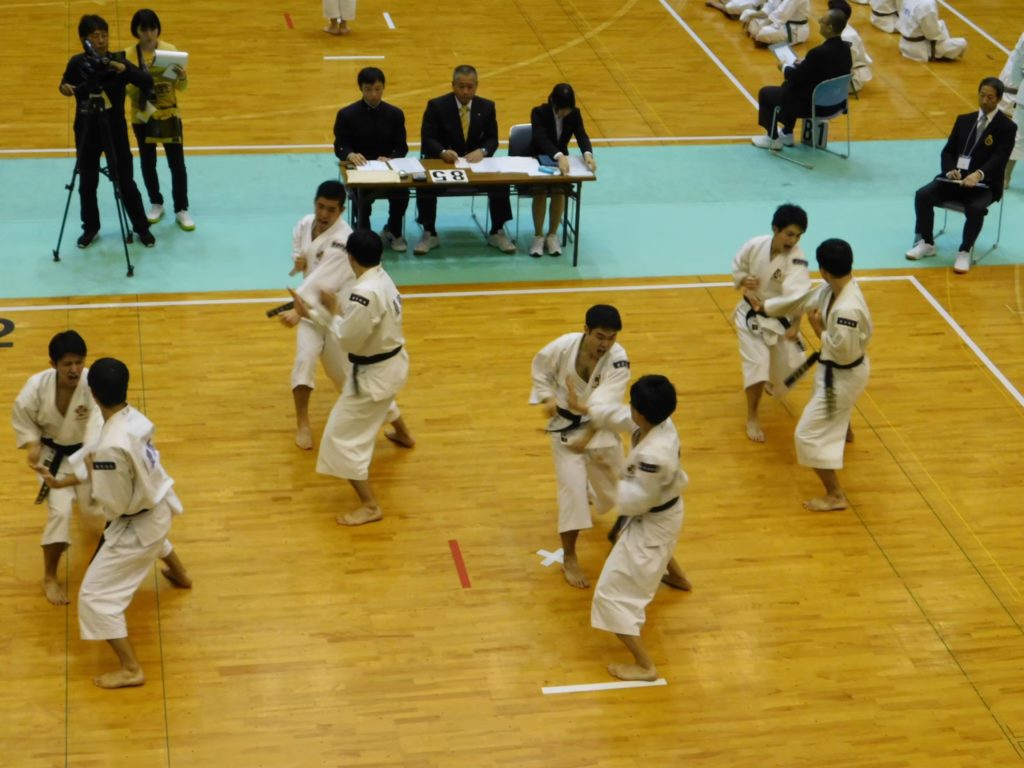 各大会は、法形(型)を組み合わせて実際に戦っているように魅せる演武と、防具をつけて実